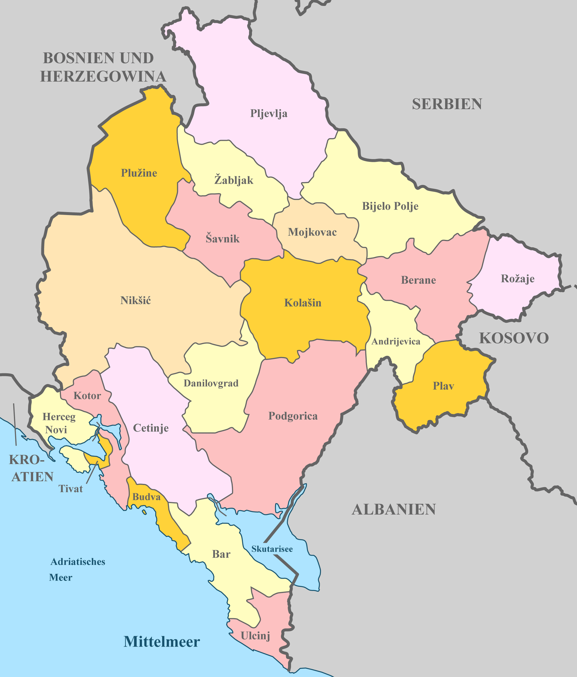 Montenegro – Karten gegliedert nach Regionen und Provinzen sowie Nachbarländern