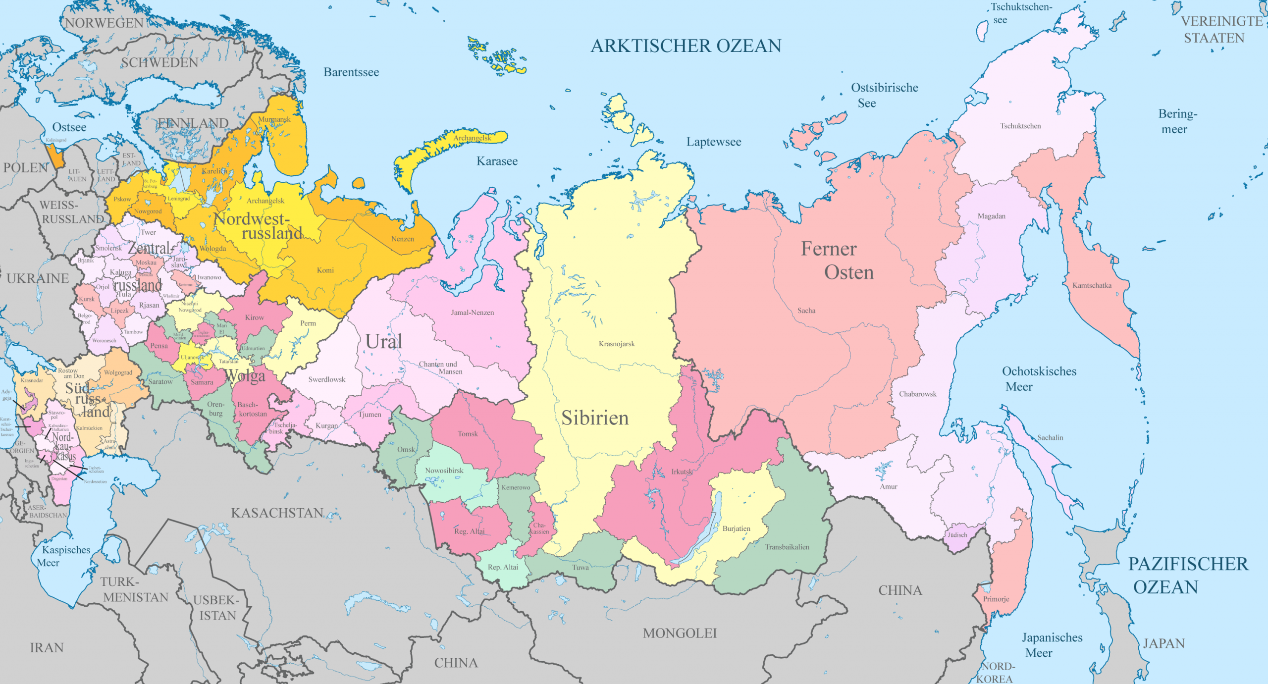 Russland – Karten gegliedert nach Regionen und Provinzen sowie Nachbarländern