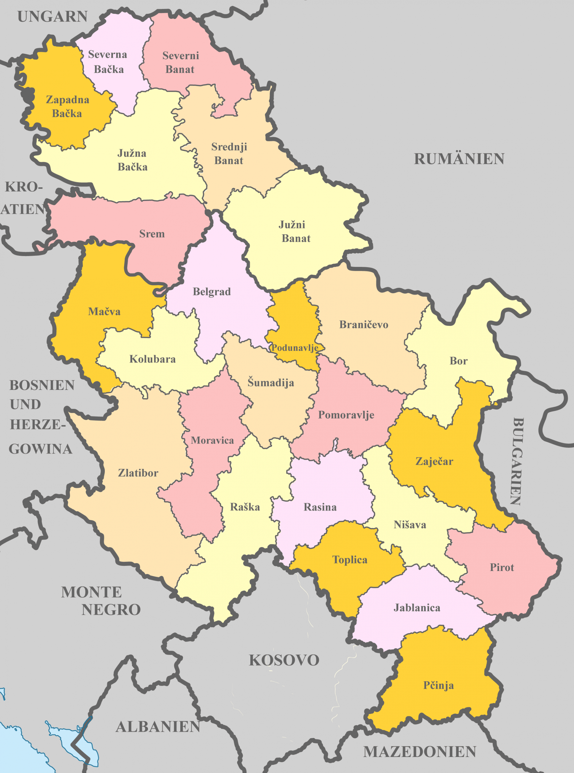 Serbien – Karten gegliedert nach Regionen und Provinzen sowie Nachbarländern