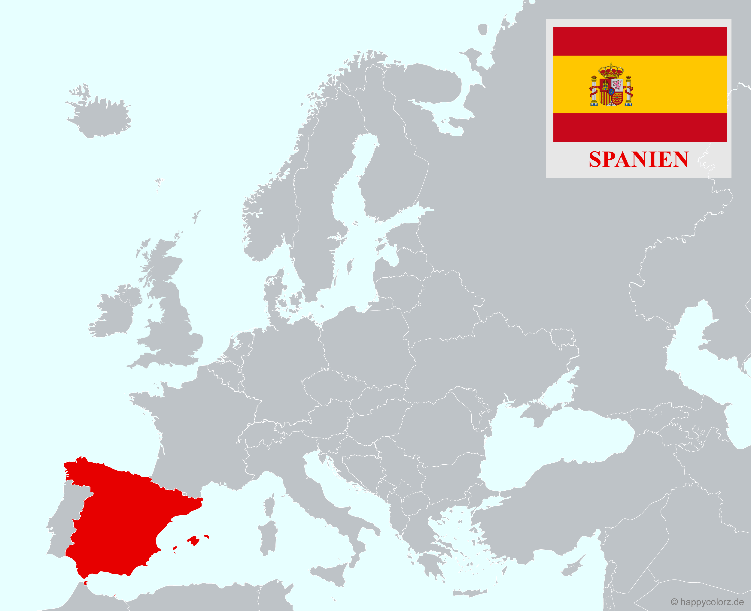 Spanien – Flagge und Karte in Landesfarben